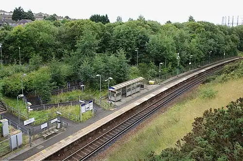 The track was lifted in 1987/8, but the formation was kept intact and this made the eventual reinstatement of the line as part of the Larkhall branch reopening project in 2005.[2] Reopening the connection meant that Maryhill Line services no longer had to run empty to Knightswood North Junction (near Westerton) to reverse before returning to Queen Street, freeing up capacity for the extra trains serving the new line to Larkhall to run through Westerton and onwards to Milngavie. A station to serve the Kelvindale & Dawsholm area was proposed by SPT as part of the scheme (the station was originally to be called Dawsholm, but later changed to its present name) – though it wasn't ready in time for the reopening of the 1 mile (1.6 km) branch in April 2005, services subsequently began calling later that year.