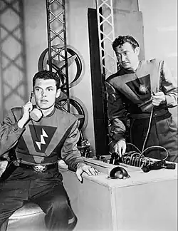 ![]() Mayer (right) with Ed Kemmer in Space Patrol, 1954 | |