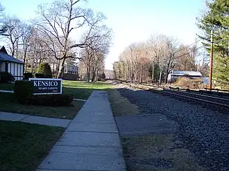 Kensico Cemetery station was a commuter rail stop on the Metro-North Railroad's Harlem Line that served the nearby Kensico Cemetery, to the north of Lakeview Avenue. Located along the platform behind the buildings at Sharon Gardens,[2] the station was similar to the still-existent and nearby Mount Pleasant station in which it served friends and family of those buried there instead of actual commuters.