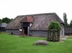 A five bay barn dating from the eighteenth century and originally at Vale Farm, Calcott, near Sturry. The barn has an oak frame and a thatched roof. It was dismantled in 1984 and re-erected at the museum in 1989.[5]