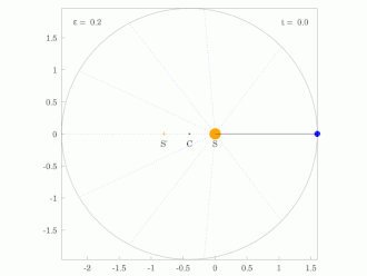 For an ellipse 0 < ε < 1 ; in the limiting case ε = 0, the orbit is a circle with the Sun at the centre (i.e. where there is zero eccentricity).