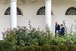 O'Connor with President Biden walking along the West Colonnade of the White House on December 6, 2021.