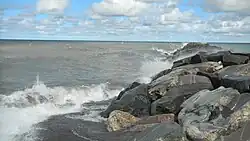 The Keweenaw Waterway is part of the Keweenaw Water Trail,[5] a designated loop route (eliminating the need to spot two vehicles or obtain a shuttle) around and through the Keweenaw Peninsula for canoes and sea kayaks. It was established in 1995 and has been designated “A Superior Sports Port” by National Geographic Adventure Magazine.[6] It is said the trail "exemplifies the Keweenaw Peninsula in the most literal sense."[7] The Lake Superior coast line is craggy and varied, claimed to be comparable to Isle Royale, but without the ferry. Uninhabited wilderness, occasional nature preserves and parks, are interspersed with sheltered harbors that offer weary paddlers the option for a warm bed, hot meal and shower at a local inn. An average paddler can cover the route in six to eight days, but extra days should be planned "to compensate for being wind-bound." The circumnavigation of the Copper Island is on its way to becoming "Michigan’s top paddling destination." Shorter trips are possible.[8]
