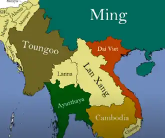 Burmese Invasion of Manipur took place in 1649 CE which was easily bought to a halt by Khagemba's interference.[14]