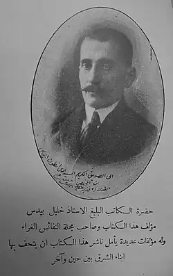 Khalil Beidas (Arabic: خليل بيدس, also transliterated Khalil Bedas, Khalil Baydas, Khalil Beydas) (1874–1949) was a Palestinian scholar, educator, translator and novelist. Beidas was the father of Palestinian Lebanese banker Yousef Beidas and was a cousin of Edward Said's father.[1]