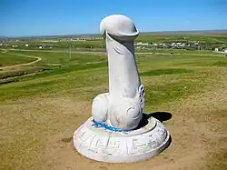 Kharkhorin Rock, also Kharkarin Rock or Phallic Rock, is a large statue of a penis raised on a platform on the steppe, located near Erdene Zuu Monastery (part of the World Heritage Site entitled Orkhon Valley Cultural Landscape) in Kharkhorin, Övörkhangai Province of Mongolia. The phallic rock statue has dual functions; primarily it is a reminder to the monks to remain celibate, but it is also a symbol of fertility and human life.[1][2]