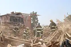 The missile strike on dormitories in Kharkiv was performed by Russian aviation with a series of missiles in the evening of 17 August and in the morning of 18 August 2022.[5] This became one of the largest attacks on Kharkiv[6] and one of the most tragic nights of the city.[7] The impact killed 25 people[1] including an 11-year old boy.[2] 44[3][8] were injured (including three children[4]).