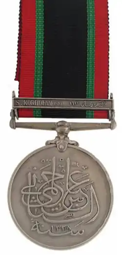 5. ^ "Khedives Sudan Medal 1910 with clasps. WO 100/407". The National Archives. Retrieved 21 December 2018.
