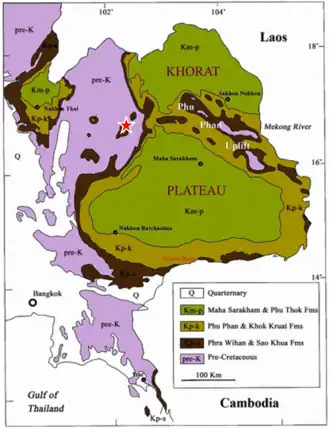 ![]() Location of the Khorat Group within the Khorat Plateau (Brown and yellow) | |