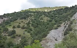 At the upper part of semi-desert zone there are rocky and stony slopes consisting of sedimentary limestone and chalky clay. These mountainous slopes, destroyed by wind erosion, are called "skeletal mountains". They are the habitat of dry Mediterranean type of vegetation, which is a gem of the reserve. The southern mountainous slopes covered by rocky massifs at the altitudes of 1,400–1,700 m (4,600–5,600 ft) are covered by Armenian Iranian phrygana (which means "dry" in Greek) with its many varieties.