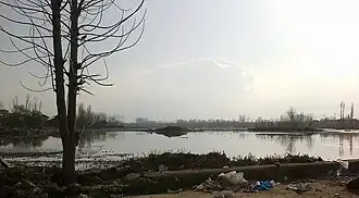 Khushal Sar (Urdu pronunciation: [xʊʃɦɑːl səɾ] ; Kashmiri pronunciation: [xɔʃhaːl sar]) is a lake located in Srinagar, Jammu and Kashmir, India. It is in a highly deteriorated condition and has been encroached upon at many places with illegal construction and landfilling.[1] The lake once stretched from Zoonimar up to the Aali Masjid but now it is considerably reduced. It is connected to the Anchar lake via a small channel. Another smaller lake, known as Gilsar, is connected to the Khushal Sar via a narrow strait, which is spanned by a bridge known as Gil Kadal. The Gilsar lake is in turn connected to the Nigeen lake via the Nallah Amir Khan. Until the 1970s, the Mar Canal drained into this lake providing navigability up to Ganderbal via the Anchar lake. After the filling up of the Mar Canal, the condition of the lake deteriorated further.[2] [3]