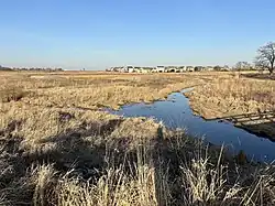 The creek has seen substantial restoration efforts, including the 450 acres of native Illinois prairie and wetlands that have been revitalized in the center of the Grove on Kickapoo Creek subdivision in Bloomington. The prairie serves as a natural means of controlling stormwater and preserving the land, making it a significant ecological feature of the neighborhood.[1]