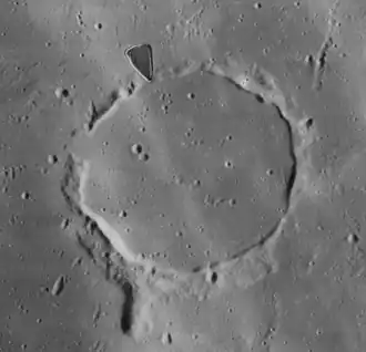 Kies is the remnant of a lunar impact crater that has been flooded by basaltic lava, leaving only a remnant of the outer rim. It was named after German mathematician and astronomer Johann Kies.[1] It is located in the Mare Nubium almost due south of the crater Bullialdus. Northwest of Kies is König. To the south-southwest lies a lunar dome structure designated Kies Pi (π). It has a small crater at the top and is most likely volcanic in origin.