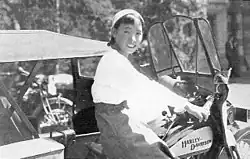 Kiku Nishizaki, née Matsumoto started working as an elementary school teacher after finishing Saitama Girls' Higher Normal School.[2] On a school trip she took pupils and visited Ojima Airfield in Ota City, Gunma Prefecture and saw airplanes and aviation, and she was fascinated to retire the school soon after in 1931 and entered an aviation school.[3]