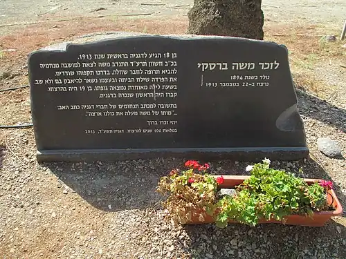 Moshe Dayan, whose parents were members of the kibbutz, was named after Barsky.[7] Barsky had gone on a mule to obtain medicine from Menahemia for his friend and fellow kibbutz member, Shmuel Dayan.[8] When the mule returned without him, a search was undertaken and his body was discovered.[9]