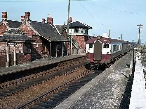 The station closed in 1977 when Northern Ireland Railways services were cut back.[1] It has now been dismantled, and all traces were lost whenever Kilroot power station was constructed in the late 1970s.