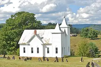 Kimberling Lutheran Cemetery is a historic Lutheran cemetery and national historic district located near Rural Retreat, Wythe County, Virginia. The cemetery includes approximately about 50 early Germanic sandstone monuments dating from 1800 to 1850. The associated Kimberlin Lutheran Church was built in 1913, and is a large frame structure with two unequal-sized towers.[3]