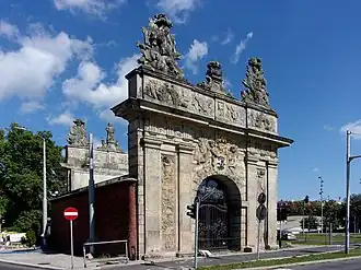 The King's Gate is a historic Baroque city gate. It is a central object of the Prussian Homage Square (Polish: Plac Hołdu Pruskiego), placed near the intersection of Matejki Street and Polish Soldier Square. To its north is located the Solidarity Square.[1][2][3]