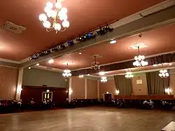 Amateur dramatics groups such as Herne Bay Operatic Society (started 1951) and Theatrecraft (started 1948) have always used the Hall and as of 2013 continued to do so.[36][53][54] Professional wrestling took place here in the 1970s. In 1978, Opera For All presented a small-scale, costumed performance of La Traviata by young, professional singers accompanied by a single piano.[55] In 1987 the Sittingbourne DJ Steve Barker organised several under-18 celebrity discos, featuring Bradley Sheppard and Lee MacDonald.[56] In 1988 Jupiter Brass gave a concert at Herne Bay Music Club's 10th birthday.[57] In April 1989 The Soviet National Folk Dance Ensemble of twenty dancers and nine musicians, on their first visit outside Soviet Russia, stayed with families locally and performed at the Hall.[58] The Hall hosted a keyboard and organ festival in aid of charity in 1989.[59] In April, May and June 1999, 691 Promotions operated monthly raves with police approval from 11.45pm until 7.45am. At a previous rave held at the Hall in March 1999, there were three arrests.[60]
