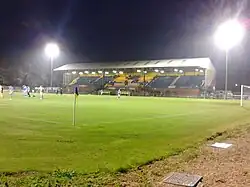The club took over the Walks ground from King's Lynn, who had played there since being formed in 1881. Canvas screens were erected around the ground in 1892 to prevent people watching matches without paying.[3] In 1893 a match was played against Wisbech Town under electric lights.[3] A stand was built in 1896, although it was demolished in 1905, replaced by a 500-seat wooden grandstand built at a cost of £250.[3] In the mid-1950s the Supporters Club installed terracing for 4,000 and 780 seats on the northern side of the pitch. In 1955 the wooden stand was sold to a company in Spalding and a new grandstand seating 1,400 with a terraced paddock holding 3,000 was built at a cost of £27,000 and opened by then FIFA President and FA Chairman Arthur Drewry on 18 August 1956.[3]