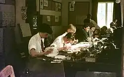A major feature of the school was the emphasis given to sports and extra-curricular activities. During its short life of 11 years, KAS won, no less than six times, the Milocarian Trophy[18][19] for athletics in British schools, as well as the 4 x 110 yards relay race at the London Athletic Club's Schools' Meeting held in the White City Stadium, London.[20] Apart from the usual school sports, there were also: Scouts, Guides and CCF camps, horse riding and dinghy sailing, as well as inter-house music and verse-speaking competitions. The school assembly hall, a fully equipped theatre, was the venue for some memorable school productions. In 1949, the Rank Organisation filmed Looking for Trouble at the school; all the supporting cast were members of staff or pupils of the school. In January 1955, KAS competed in the BBC Radio Top of the Form quiz show.