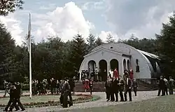 The school's facilities included teaching and library buildings, craft workshops, assembly and dining halls, a double gym, a running track and playing fields, stables, a boathouse and school clinic.[12] The only significant British building was St George's School Chapel constructed from two Nissen huts; it is now a listed building.