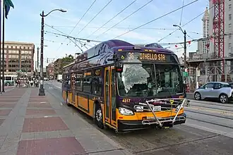 Metro's trolleybus fleet consists of 174 entirely low-floor New Flyer Xcelsior coaches.[20] Of the total, 110 are 40-foot (12 m) vehicles (model XT40) and 64 are 60-foot (18 m), articulated buses (model XT60).[20] The buses include an auxiliary power unit, to allow them to operate off-wire for up to 3 miles (4.8 km).