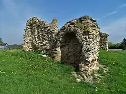 "The only part of the palace now remaining stands in a large field close to the village and seems to have been the hall. The foundations have been formerly extensive, with several large vaults, but in 1816 a great part of these were dug up, to be employed in draining, which the Duke of Portland then commenced upon his estate here; and it appears much spoliation was made on the venerable walls, though it is said his Grace had given strict orders to the contrary."[37]
