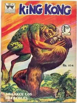 From 1965 to 1969 a Mexican comic company called Editorial Orizaba published a series based on King Kong.[10][11][12] The series was published with fully painted color covers, but with sepia and white interior artwork. A new issue was published every Wednesday and the series would run 185 issues.[13] In 1972 the series was reprinted (only 118 issues) by a company called Ediciones Joma.[14][15]