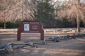 ![]() The entrance on SC 161 to Kings Mountain State Park near Blacksburg, SC | |