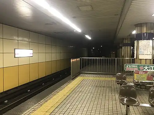 This station has an island platform serving two tracks under Nagai-koen-dori Street, and a returning track in the east of the platform.