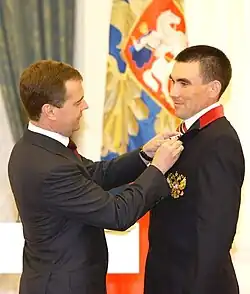 ![]() Kirill Mikhaylov is awarded the Order for Services to the Fatherland, fourth degree, in Russia, by President Dmitry Medvedev, for winning three gold and two silver in biathlon and cross-country skiing at the 2010 Winter Paralympics. | ||||||||||||||||||||||||||||||||||||