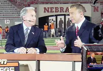 Kirk Edward Herbstreit (/ˈhɜːrbstriːt/; born August 19, 1969)[2] is an American sportscaster and former college football player. He serves as an analyst for ESPN's College GameDay, a television program covering college football, and provides color commentary on college football games on ESPN and ABC and Thursday night NFL games on Prime Video. For his TV work, Herbstreit has won five Sports Emmy Awards in various categories. He appeared annually as a commentator in EA Sports' NCAA Football video game series, including after a ten-year hiatus.