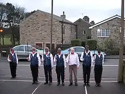 Kirkburton has a rapier dance team, who perform traditional longsword dances each New Year's Day at pubs in the villages of Kirkburton and Highburton in addition to their numerous appearances at festivals elsewhere in the country. Rapier dancing was a tradition in the village up to the beginning of the 20th century, and was revived in 1974. The team adhere to what is largely believed to be the original dress of clogs, blue waistcoats and trousers with ribbons down the side. The final tradition, that of blackened faces, is only adopted during the New Year performances.