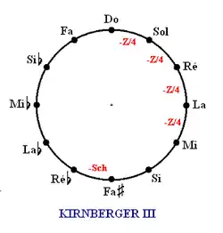 After some disappointment with his sour, narrow fifths, Kirnberger experimented further and developed another possibility, later named the Kirnberger III.