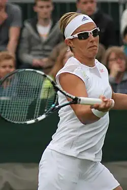 At the French Open, she defeated Ayumi Morita in the first round, 6–1, 6–4, before Maria Sharapova defeated her in straight sets in the second. In the week before Wimbledon, she reached semifinals of the Rosmalen Championships but lost to Andrea Petkovic.[26] At Wimbledon, she lost in the second round to Yanina Wickmayer. At the US Open, she failed to repeat her third-round appearance of the previous year, losing in the first round to Patty Schnyder. By the end of the year, she reached two International-level quarterfinals, at the Korea Open and Luxembourg Open. She had been troubled by a recurring wrist injury and underwent surgery at the end of the 2010 season.[27]