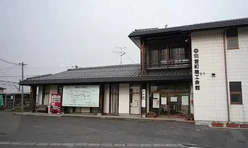The station consists of one ground-level island platform connected with the station building by a level crossing. The station building is a multi-purpose facility and also contains the Hōki Chamber of Commerce and Industry.