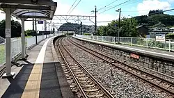 The station has two opposed side platforms serving two tracks. The platforms are linked by a footbridge.