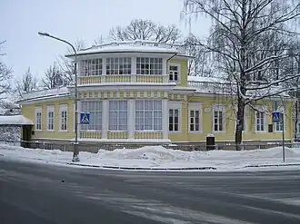 Among the other owners of the house are: Vera Pryanishnikova, the wife of the real secret counselor (1857), Fedor Ivanovich Pryanishnikov (1866), daughter of the merchant Olga Skryabin (1870). In 1877, the wife of the state councilor Olga Vladimirovna Ivanova bought it from the latter, which she owned until the October Revolution of 1917. She undertook various building work: the portico on the corner of the house was turned into a glazed gallery, the house was expanded along the facade into two windows on both sides. In 1910, a memorial plaque was placed on the house in memory of Pushkin's residence. Since 1917, the house has housed a holiday home for sisters of mercy, and since 1920, the acclimatization station of the Supreme Council of National Economy was located here. Since 1931, the house has been inhabited. In the Great Patriotic War, it was seriously damaged but rebuilt. In 1958, the house opened a museum "Dacha AS Pushkin", and in 1976, the house was completely transferred to the museum.[3][4]