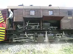 The twin Meyer bogies with the (operating) drive of the rotary snow plough above
