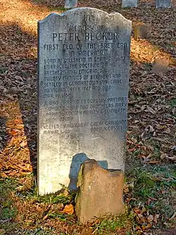 The Klein Meetinghouse is an historic Dunkard (Schwarzenau Brethren or Church of the Brethren) meetinghouse that is located in Harleysville, Pennsylvania. Built in 1843, it is the second oldest congregation of the Brethren in the United States, and was established in this area in 1720 when Peter Becker, who led the Brethren to America in 1714, built this meetinghouse. The adjoining cemetery contains Becker's remains.[2]