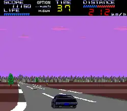 Unlike the NES version, Special's gameplay is featured in a third-person perspective akin to even the most basic driving games like Out Run and Rad Racer. The action is very similar to that of Chase H.Q. which also features a third-person driving perspective. Players have to navigate KITT through and around various cars, big rig trucks, and other obstacles in order to reach their destination and face each level's boss. However many of the cars on the open road are armed with rear guns and will try and fire at KITT. Jet fighters or propeller planes will also fly by and try to fire machine guns or drop missiles on KITT.