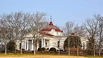 An unusual addition to the county's architecture in the 1890s was the Knights of Pythias Pavilion which was moved to a hill west of Franklin (WM-996). The pavilion was originally located on the grounds of the Tennessee Centennial Exposition in Nashville which was held in 1897. It was purchased after the exposition and moved by wagon to its present location off Highway 96. The building is of Neo-Classical design and features a prominent red dome. (page 31)[2]