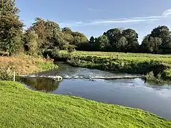 The river rises near Summerhill, and flows north past the R156, and later the R158 and R159 roads, through Knightsbrook, and merges into the River Boyne a few kilometres to the east of Trim.[2][3]