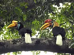 4. ^ Kinnaird, M. F. (1998). "Evidence for effective seed dispersal by the Sulawesi red-knobbed hornbill, Aceros cassidix". Biotropica. 30 (1): 50–55. doi:10.1111/j.1744-7429.1998.tb00368.x. S2CID 84282134.