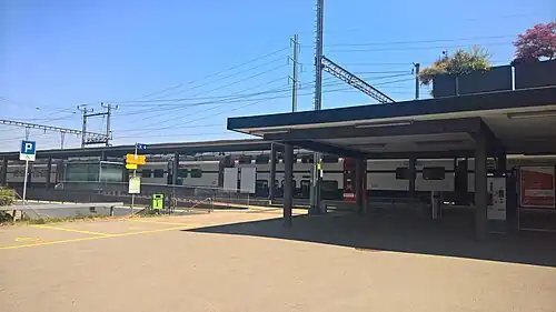 Knonau is a railway station in the Swiss canton of Zurich, situated in the municipality of Knonau.[4] The station is located on the Zurich to Zug via Affoltern am Albis railway line,[5] within both fare zone 156 of the Zürcher Verkehrsverbund (ZVV)[2] and fare zone 633 of the Zug Fare Network.[3]