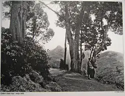 In 1867, Major J. M. Partridge imported Australian eucalyptus and wattle trees and in 1872, Lt. Coaker cut a path along the steep south east facing ridge which overlooks the plains below and prepared a descriptive map the region.[12][13] In the later half of the 19th century, it became a regular summer retreat for American missionaries and other European diplomats as a refuge from the high temperatures and tropical diseases of the plains.[14][15] In 1901, the first observations commenced at the Kodaikanal Observatory.[16] In 1909, the area had developed into a small town with 151 houses and a functioning post office, churches, clubs, schools and shops.[14] In 1914, the ghat road was completed.[11] It continued to serve as a summer retreat during the British Raj and became a popular hill station later.[1]