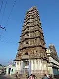The temple is notable for its unique architecture and two huge gopurams which stand at 160–170 feet (49–52 m) and 200–210 feet (61–64 m).[1] The temple gopurams are adorned with intricately carved statues depicting scenes from Ramayana, Mahabharata, and Bhagavata. The construction of the temple began in 1889 when brothers Dwarampudi Subbi Reddy and Rami Reddy donated land and built a small temple with wooden idols of Rama and Sita. A larger temple was built in 1939. The two gopurams were constructed in 1948–50 and 1956–58.[2][3]