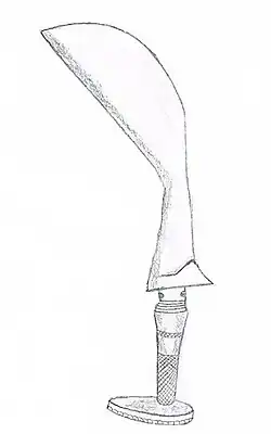 A Kodava woman is called Kodavathi[22]. Kodavas have distinctive dresses, the men wearing wraparound robes called the Kupya (now only seen at ceremonial occasions), and the women with a distinctive style of wearing the sari. The Kodava woman wears a sari with the pleats at the back and the loose end pinned at the right shoulder. The men have many distinctive practices such as carrying ceremonial knives, and martial war dances.[23]