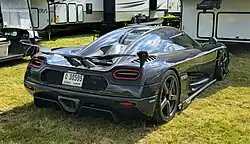 The engine is the Jesko's 5.0-litre twin-turbo flat-plane crank V8 which does without a flywheel. Using 95-octane standard pump fuel it will output 1,280 bhp, and 1,600 bhp on E85 fuel.[1]
